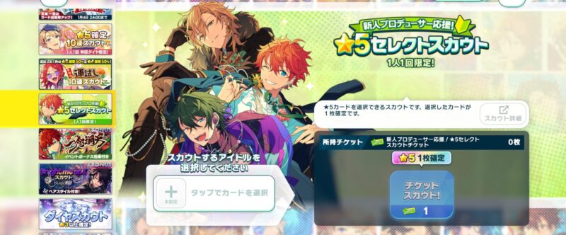 全キャラ対象の☆5確定スカウトはいつも回さないのですが、確実に欲しいカードが手に入るダイヤセットが販売された時はほぼ課金して獲得しています(笑)。